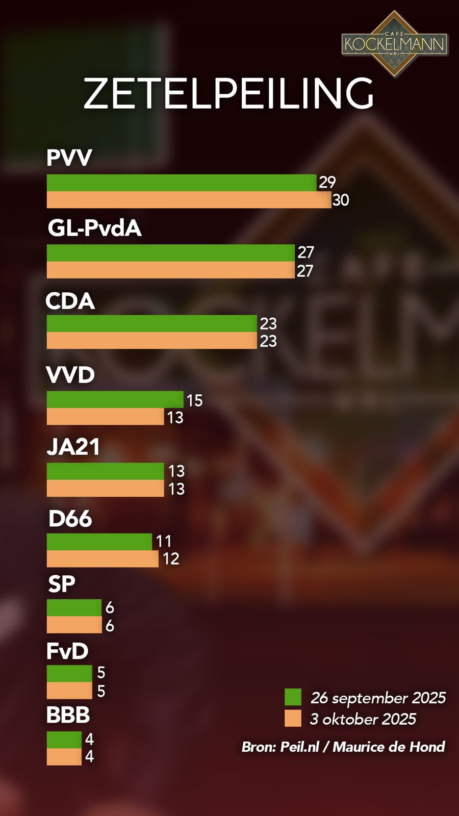 Daarmee houdt de partij zich goed staande in een roerige politieke tijd. Hoewel er geen groei zichtbaar is, biedt deze stabiliteit een solide basis voor de komende campagneperiode.