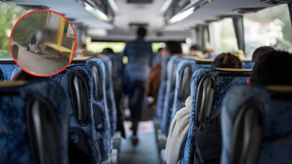 In de video is duidelijk te zien hoe de chauffeur het voertuig stilzet, uitstapt en op een matje bij de bushalte begint te bidden.