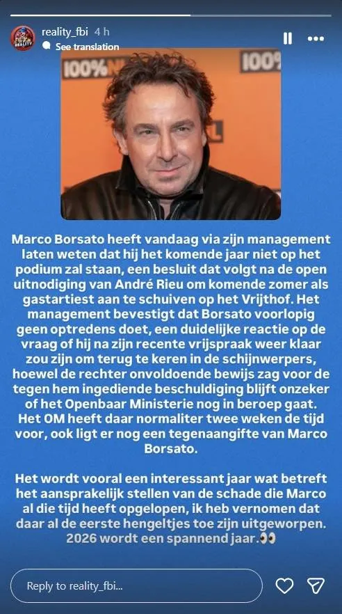 Marco zelf sprak eerder al twijfels uit over zijn terugkeer. Hij gaf aan niet zeker te weten of hij nog wil of kan optreden. De afgelopen jaren hebben diepe sporen achtergelaten en volgens mensen om hem heen heeft hij vooral rust nodig.
