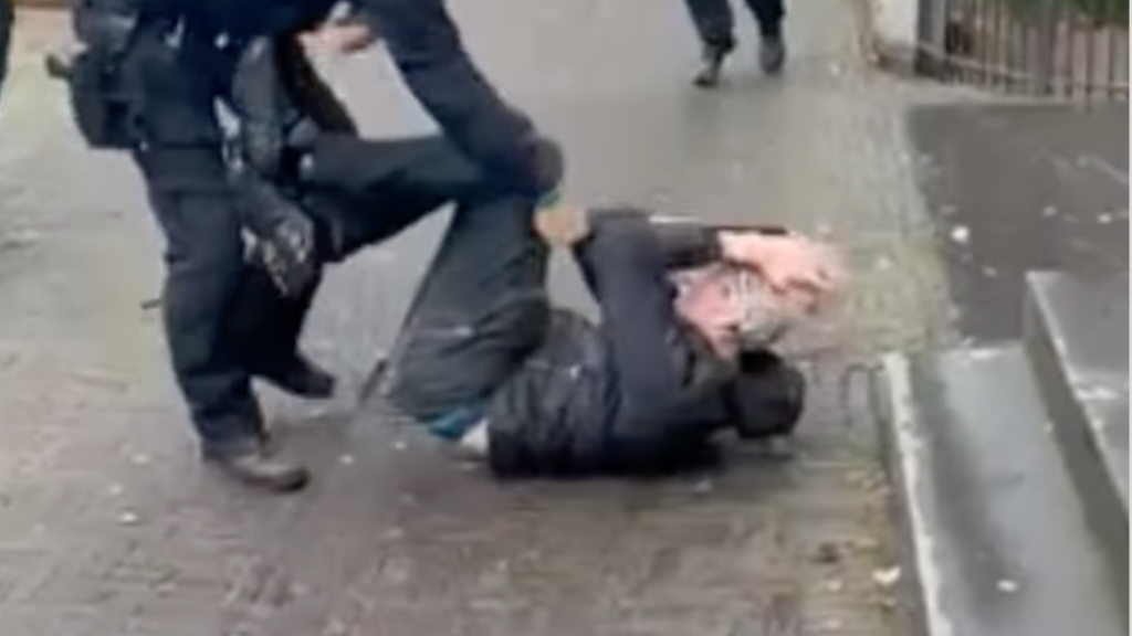 De video van de man die door de ME werd aangepakt, roept vragen op. Was het proportioneel om iemand niet alleen onderuit te halen, maar ook meerdere keren te slaan en te schoppen?